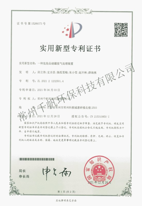 常州千帆環??萍加邢薰究偛课挥诔V菘平坛牵闪⒂?013年3月,是以技術研發和專業設計為先導、工程建設為主打的新型環保產業公司;環保工程設計資質、總承包資質、安全生產許可證等資質齊全。公司2017年被評定為國家高新技術企業,也是上海股權交易中心掛牌企業(企業代碼203109),公司在環保領域技術力量雄厚。公司下設常州千帆環境工程設計院有限公司,并和常州大學共建一座環境工程實驗室,和中國科學院成都化學研究所、南京理工大學、常州大學、江南大學等高校保持長期的產學研合作。經過6年的發展,公司在常州及周邊地區完成了近500家“三廢”處理工程,在廢物治理領域具備了成熟的技術條件、積累了豐富的工程經驗。